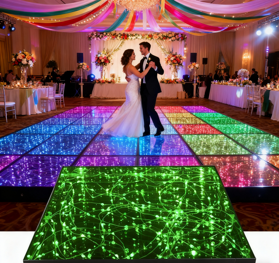 With an IP55-IP67 waterproof rating, it is suitable for indoor and outdoor use. Combined with other stage-effect products, such as smoke machines, spark machines, etc., it will bring an unforgettable experience to your wedding party.