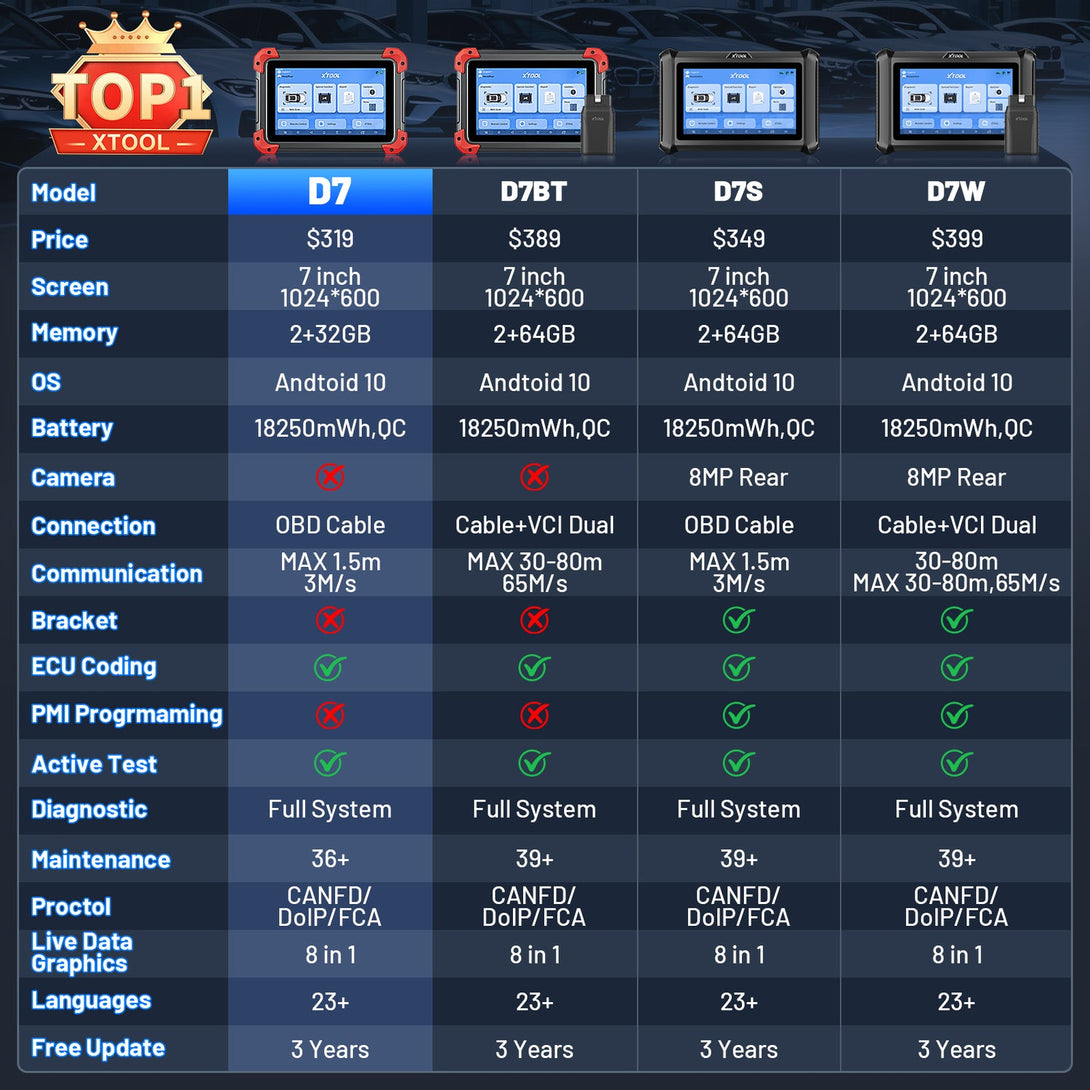 - [𝐏𝐫𝐨𝐟𝐞𝐬𝐬𝐢𝐨𝐧𝐚𝐥-𝐆𝐫𝐚𝐝𝐞 𝐅𝐞𝐚𝐭𝐮𝐫𝐞𝐬 𝐚𝐭 𝐚𝐧 𝐄𝐧𝐭𝐫𝐲-𝐋𝐞𝐯𝐞𝐥 𝐏𝐫𝐢𝐜𝐞] XTOOL car scanner diagnostic tool offering high diagnostic capabilities equivalent to $500-level tools, XTOOL D7S V.2.0 integrates 36+ special services, full system scanning, 4k+ bi-directional control, ECU coding, PMI functio and FCA AutoAuth/CAN FD/DoIP, It meets the needs of both repair shops and DIY users, significantly reducing equipment investment costs. We are available 24/7/365 to support you and offer the following: 30-day return, 24-month brand warranty, 36-month free updates, lifetime technical support.