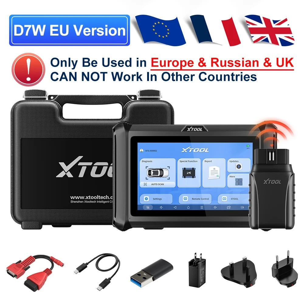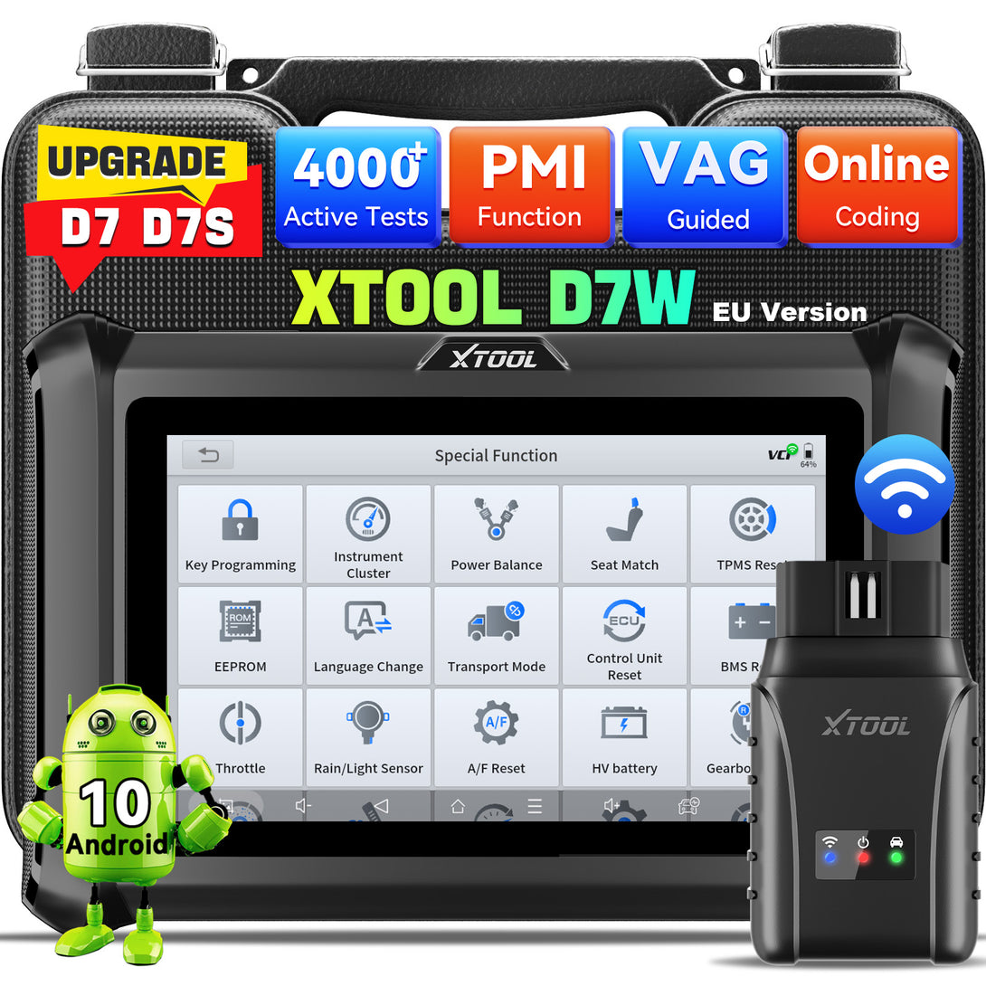 - 2024 Upgraded Ver. XTOOL D7 scan tool: XTOOL D7W OBD2 scanner diagnostic device has all-round upgraded perfect for daily repair and maintenance services: improved hardware: 2 + 64 GB, Android 10, wireless WiFi connection, CAN FD & DoIP protocol, 7.4 V 2500 mAh battery (corresponds to 3.7 V 5000 mAh), 400 mAh. 000mAh 00mAh Active tests, ECU coding for VW, Audi, Skoda, Benz and for Mitsubishi, 36+ rest services, OE full system diagnosis, export data and up to 8 pids graphics, improved V2.0 diagnostic report, 100,000+ car cover, 3-year update, can be used with XV200 endoscope etc