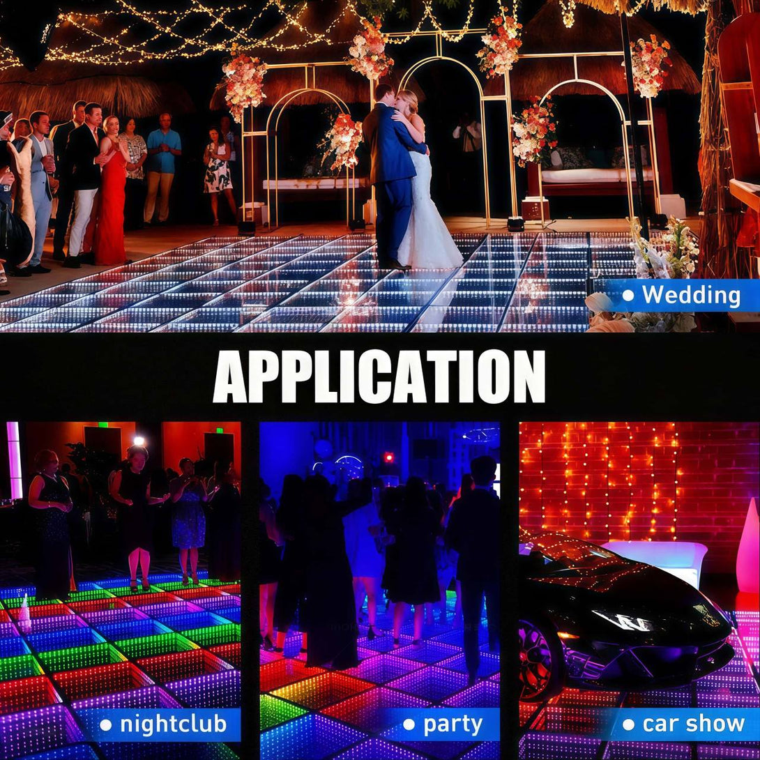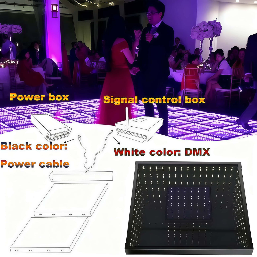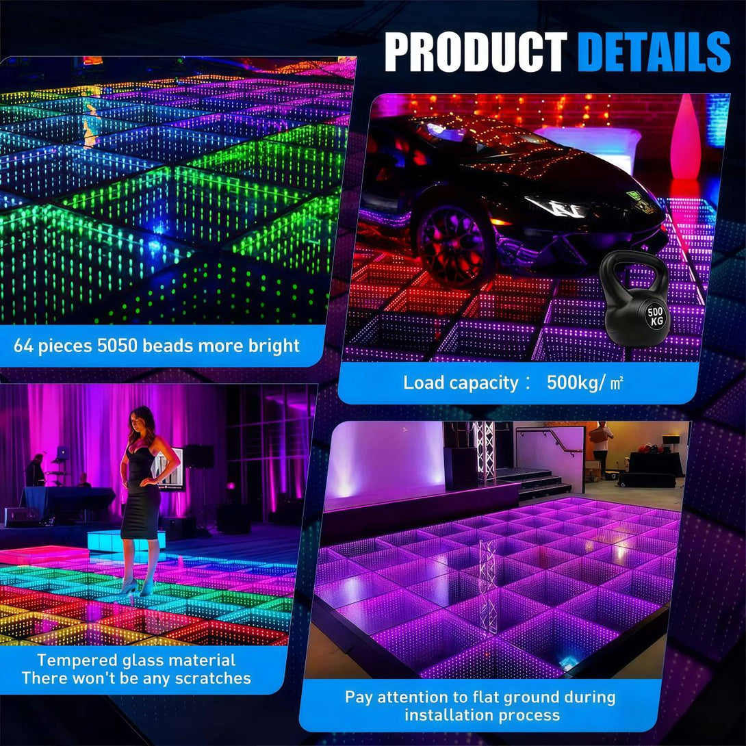 Transform your events into a dazzling spectacle with our LED dance floor featuring the stunning Infinite Abyss effect – a crowd favorite! Ideal for weddings, events, and car shows, the tempered glass surface can handle up to 500kg, ensuring a sturdy foundation for your celebration.