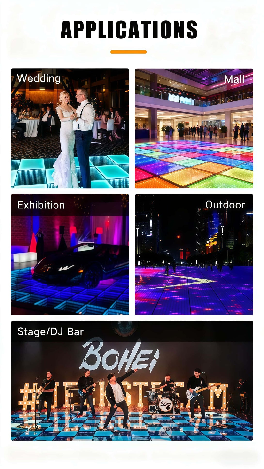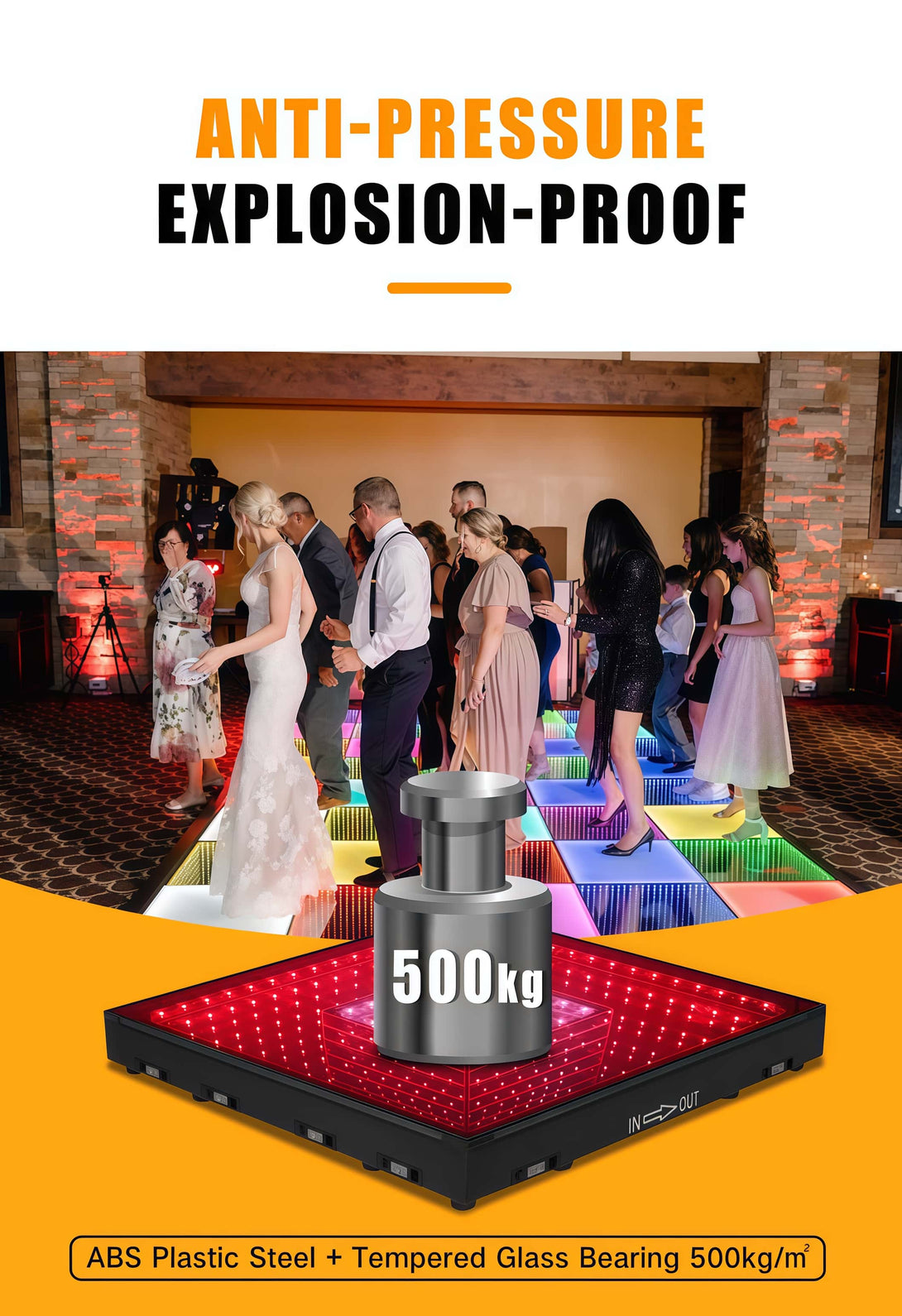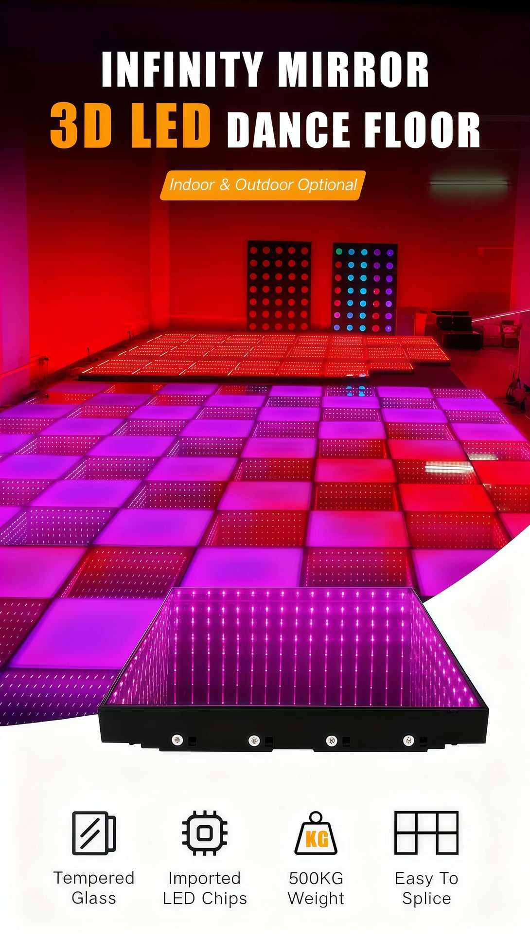 Transform your events into a dazzling spectacle with our LED dance floor featuring the stunning Infinite Abyss effect – a crowd favorite! Ideal for weddings, events, and car shows, the tempered glass surface can handle up to 500kg, ensuring a sturdy foundation for your celebration.