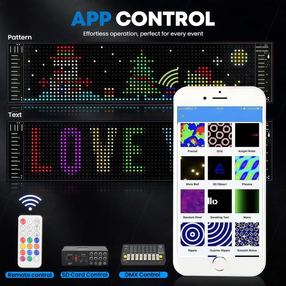 Control methods include WIFI, SD, and DMX control, wireless remote control, PC control, MADRIX software control, and tablet control, easy to use and set up.