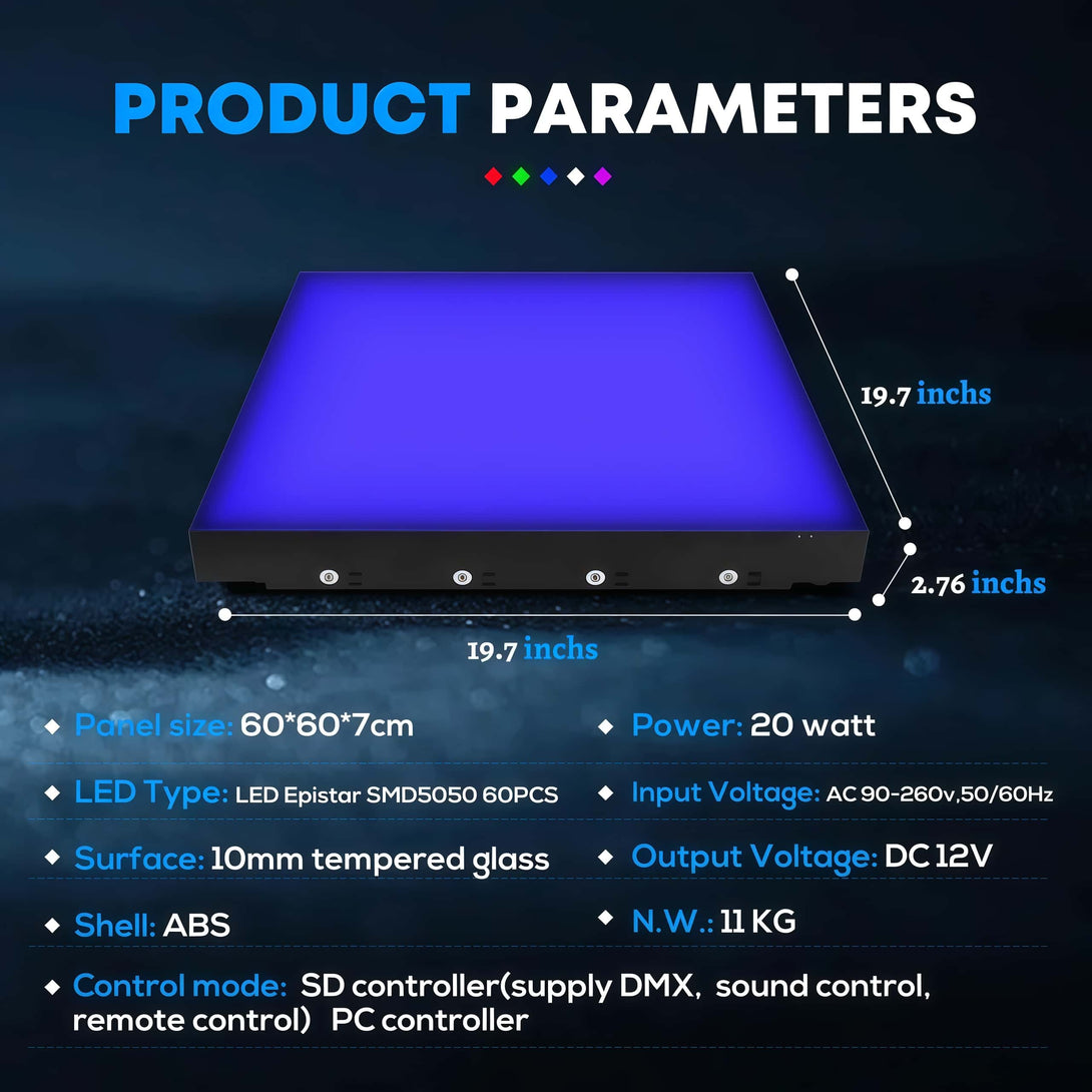 Rainbow LED dance floor panel is made of tempered glass and ABS, only 7cm thick.