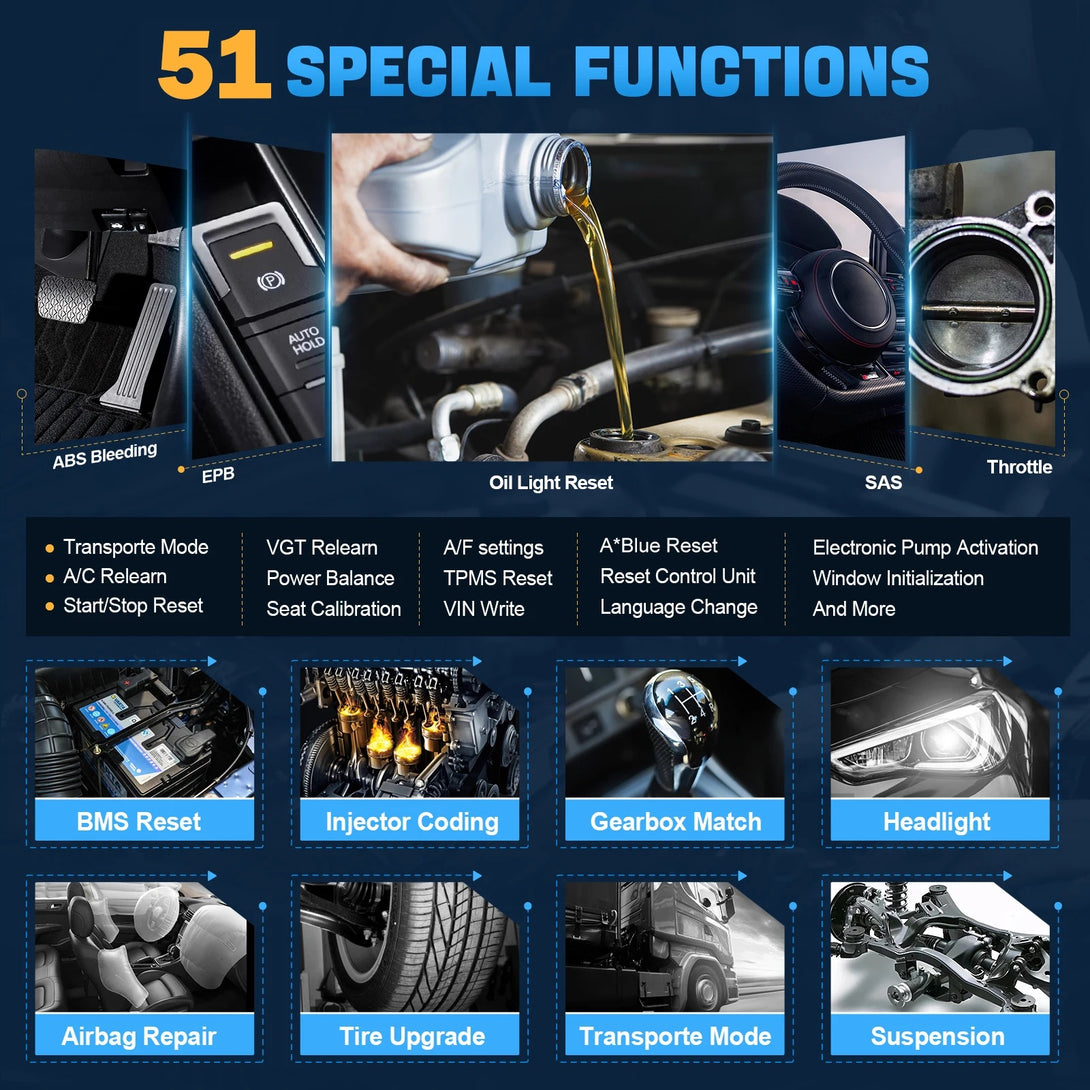 - 42+ Extended Functions: Oil service reset, tire pressure reset, etc., covering multiple systems.
